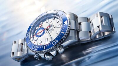錶殼側身如水線般緊緻流暢,勾勒出動感輪廓;錶底則宛如船身龍骨,線條微拱、弧度和諧。為突顯此款腕錶優雅而富運動氣息的風格,錶殼側邊與鑲嵌微拱藍寶石水晶的纖薄錶圈之間,特別設置一枚18K紅金槽紋環。這一精緻細節靈感源自昔日海洋天文鐘可拆卸的刻度圈設計,不僅增添歷史韻味,也更彰顯其通過 COSC 瑞士官方天文台認證的精準性能。