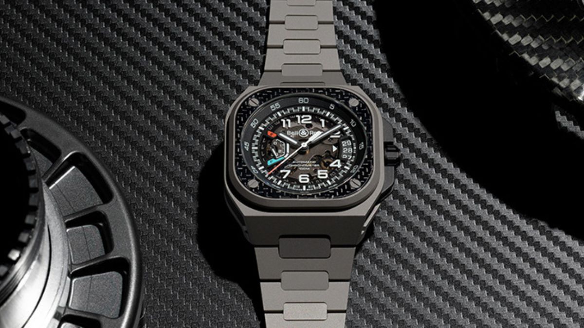 與賽車一樣,首要難題是車身重量,但追求輕巧亦必須兼顧堅固及安全性能,所以車廠紛紛向航空或航天工業借鏡,以更尖端物料製作賽車。Bell & Ross 以碳纖維和鈦金屬製作BR-X5 Racing 的錶殼,務求耐用和舒適兩方面皆符合要求,設計必須實用,簡潔不失前衛,輕巧而堅固,從錶殼側可見部件組合 : 四顆微噴砂打磨鈦金屬螺絲貫穿錶殼,固定「三明治」式結構;兩塊 2 級微噴砂打磨鈦金屬板連錶冠護肩夾著黑色 PVD 鈦金屬容器內藏自動機芯;方形錶圈由碳纖維及鈦金屬兩部分組成;鈦金屬錶帶或橡膠錶帶可以連接到錶殼兩端,錶鏈鏈節設計靈活,符合人體工學設計要求。