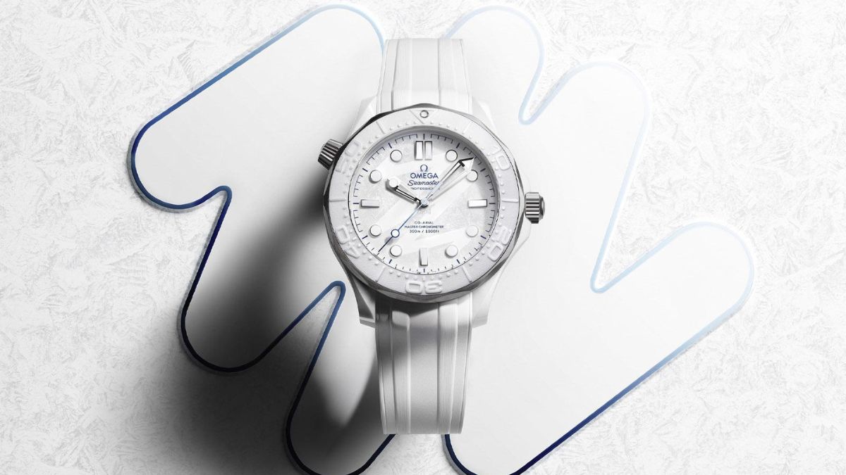 The Seamaster Diver 300M Milano Cortina 2026 is easily the most winter-inspired of the trio. Housed in a bold 43.5mm case crafted from a striking combination of white ceramic and titanium, it exudes a crisp, icy aesthetic—reminiscent of fresh snow settling on modern industrial architecture. The 43.5mm size is distinctive, reserved exclusively for Omega’s ceramic models, giving the watch a powerful, commanding presence, albeit one that remains slightly more restrained than the brand’s 44mm chronograph offerings.